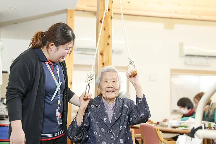 個別での入浴、手作りの昼食、楽しい趣味活動はもちろん、理学療法士による機能訓練サービスも受けられる
